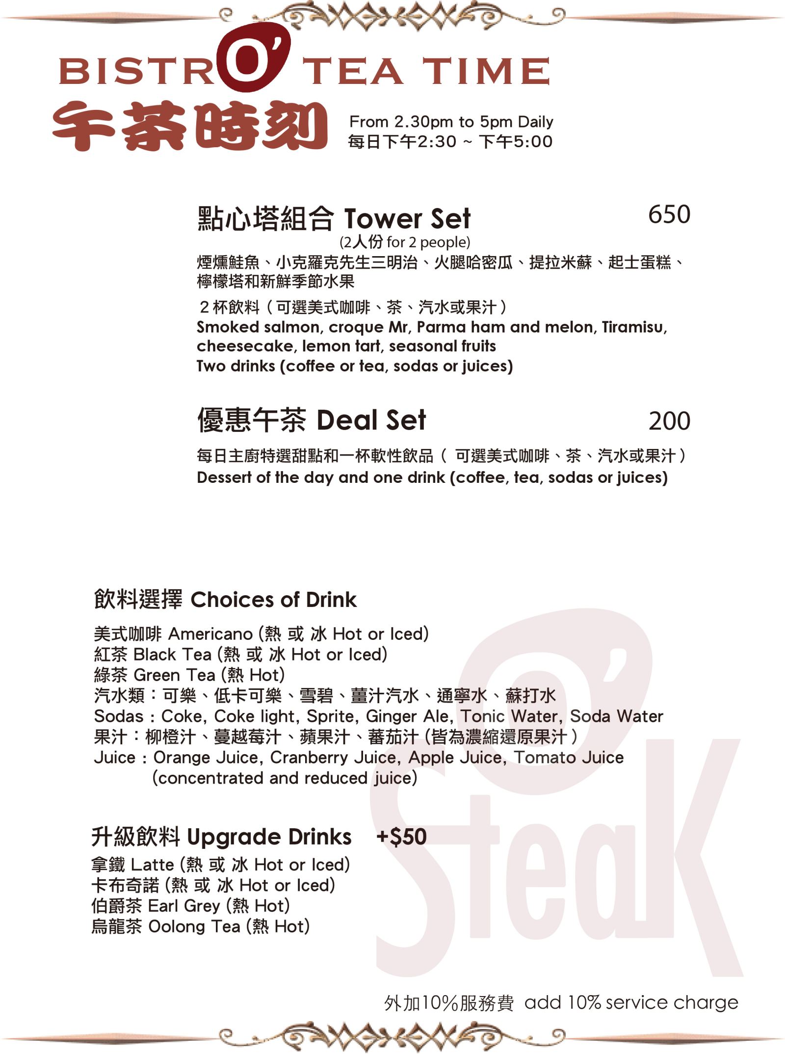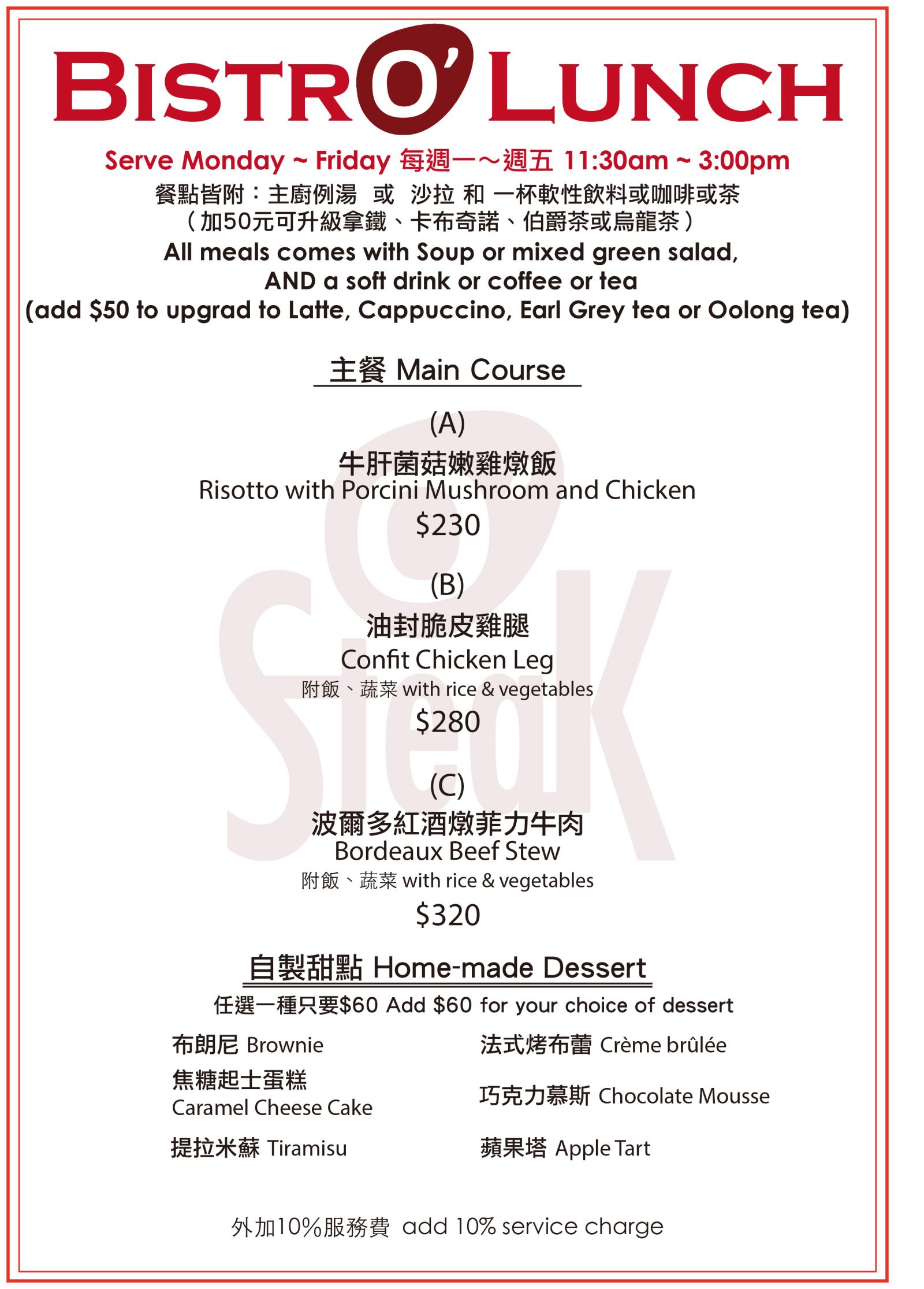 | O'Steak 法國餐酒館-平日500元餐飲抵用券-2018 新菜單!緊鄰金華公園法式餐廳,層次豐富的料理,邀您盡享經典美味!並有午茶時段,美味不間斷!17Life‧天天給您半價優質好康! | 售價:399 我要購買 |